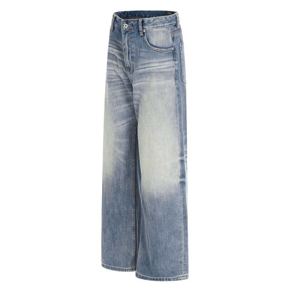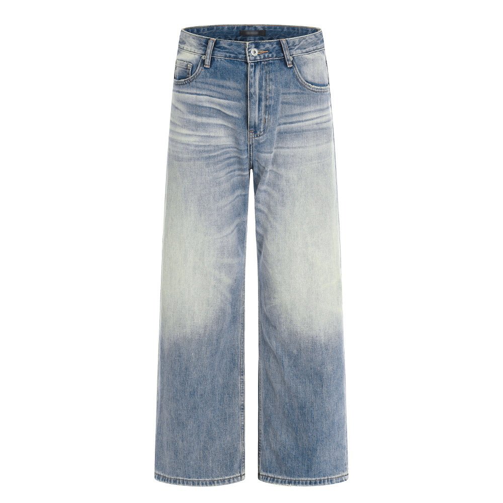 Men Loose Fit Washed Blue Denim Jeans Gradient Street Style Pants