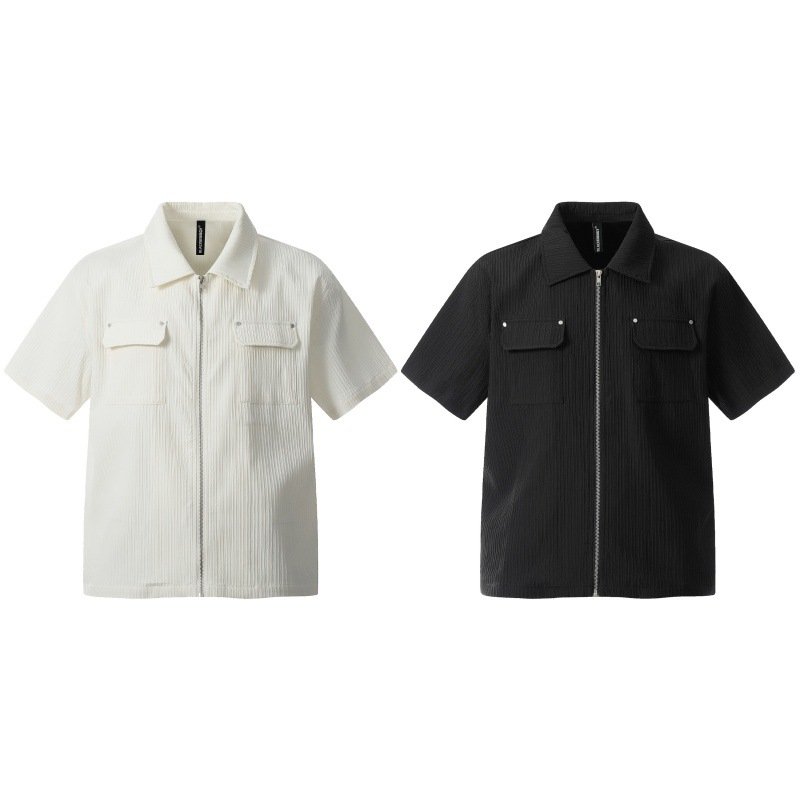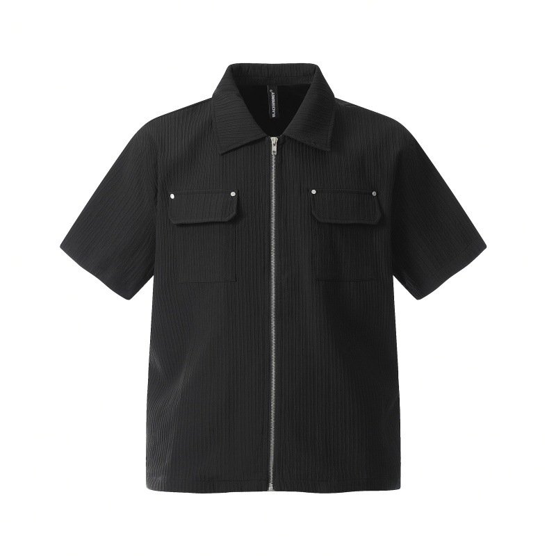 Upgrade your summer style with this textured zip up shirt for men Designed with a modern front zipper instead of buttons for a clean look The loose fit ensures maximum comfort and breathability during hot days Made from high quality polyester fabric that feels soft on the skin Perfect for casual outings parties or daily wear in Belgium This versatile shirt pairs easily with jeans or trousers for a smart casual outfit