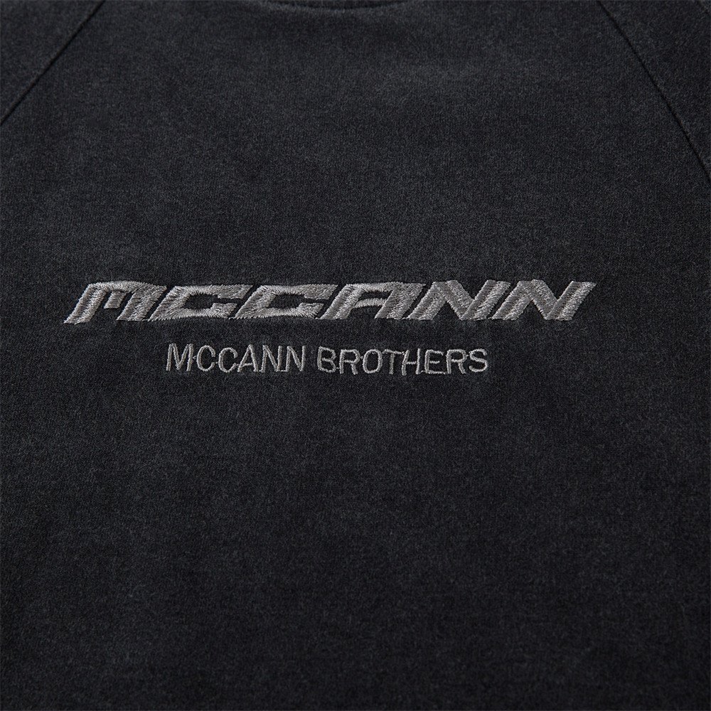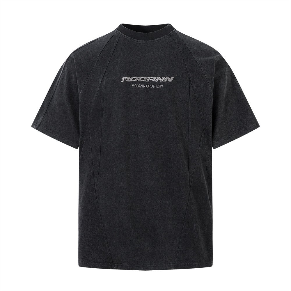 Men Washed Cotton T Shirt Loose Fit Embroidered Letter Black Streetwear Top