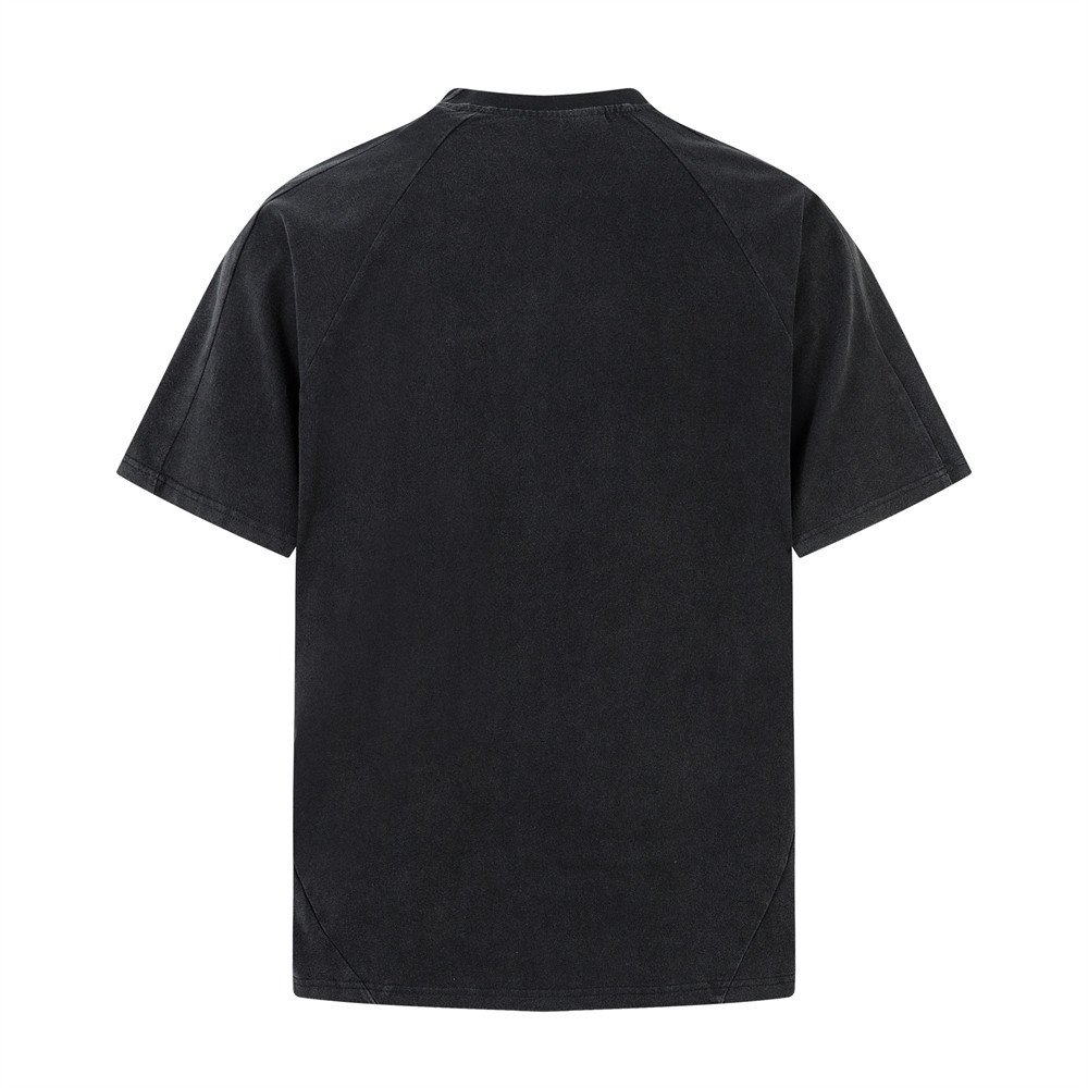 Elevate your casual look with this men washed cotton t shirt featuring a trendy faded black finish Designed with a loose fit and crew neck for maximum comfort and street style appeal The heavy work segmentation splicing and embroidered lettering add a unique touch Made from pure cotton fabric that is breathable and soft on the skin Perfect for summer days and casual hangouts in Belgium